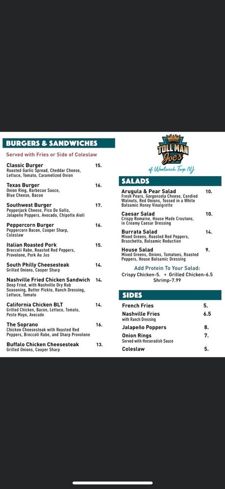 Customer reviews rave about their signature stuffed long hots, and the Nashville Fried Chicken sandwich, showcasing the variety and quality of dishes. The inviting atmosphere, combined with excellent service, makes it a must-visit. For those seeking a casual dining experience with the option of outdoor seating, Toll Man Joe's also accommodates furry friends and offers BYOB! Whether dining in or taking out, every meal here promises satisfaction and value.